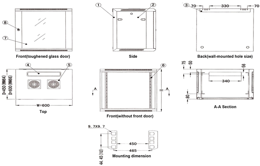 •Padrão: Cumpra com ANS/EIA RS-310-D, IEC297-2, DIN41497 PART1, DIN41494 Parte 7, Padrão GB/T3047.2-92;
